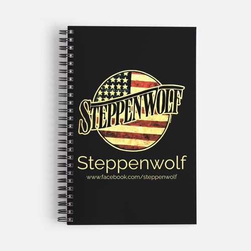 Size is 8 1/2" x 5 1/2". comes with a Steppenwolf ink pen